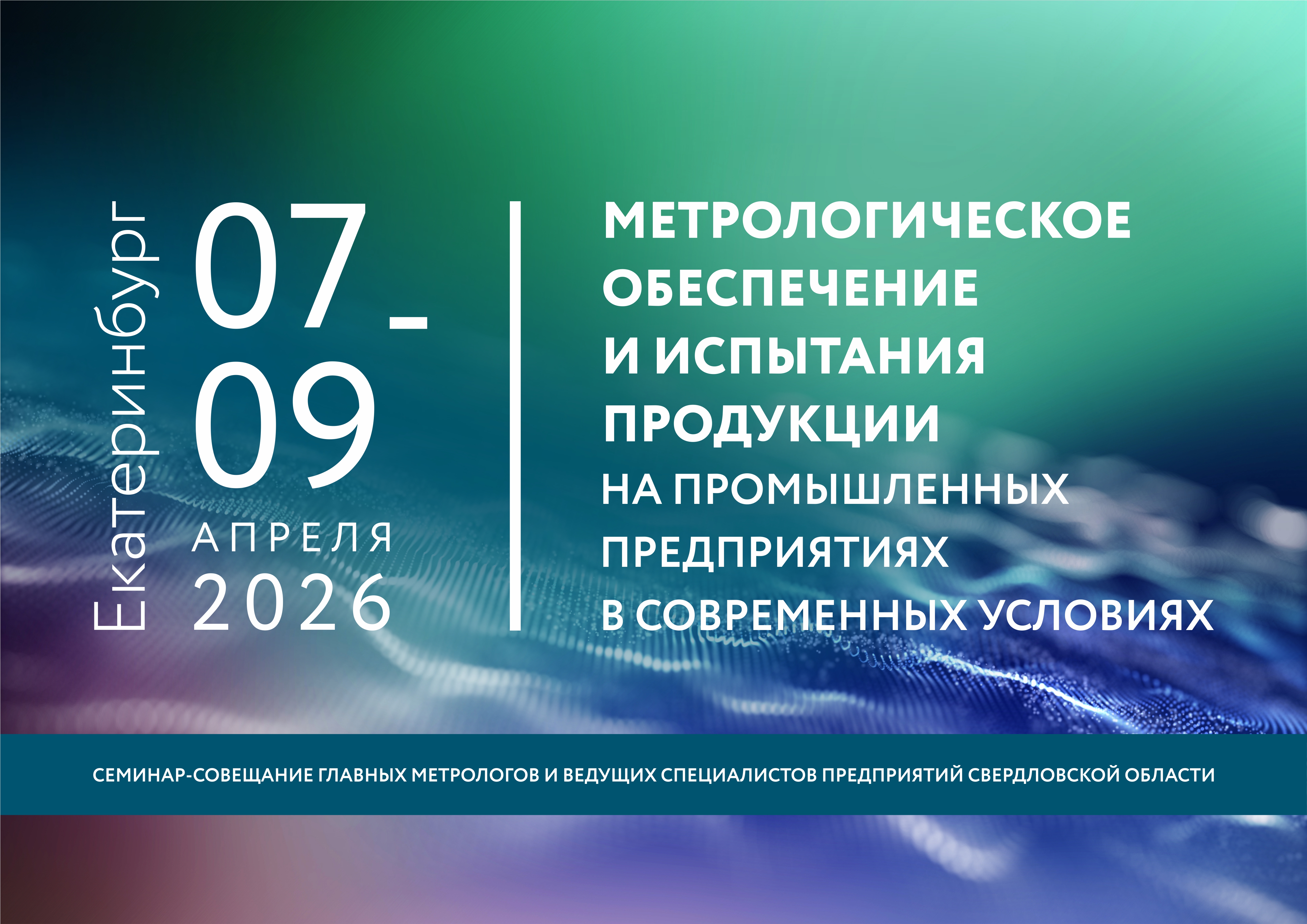 Приглашаем руководителей метрологических служб, главных метрологов, заместителей директоров по качеству, руководителей испытательных лабораторий и других заинтересованных лиц на традиционный ежегодный семинар-совещание главных метрологов и ведущих специалистов предприятий Свердловской области «Метрологическое обеспечение и испытания продукции на промышленных предприятиях в современных условиях», который пройдёт 07-09 апреля 2026 года в г. Екатеринбурге.